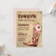 Saddle up for some fun with this uniquely customisable, cowgirl themed, rustic, pink, floral, bachelorette party invitation.