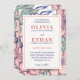 Rustic Pink Floral Hand Drawn Botanical Wedding Invitation