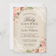 Rustic Pink Floral Ivory Burlap Lace Baby Shower Invitation
