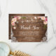 Rustic Pink Floral Lace String Lights Thank You Card
