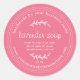 The Rustic Pink Lavender Soap Label is a round sticker featuring a bright lemonade pink background with soft white lettering and sweet hand-drawn botanical accents. Designed for homemade bath products, this label is perfect for lavender soap bars, artisan gifts, farmer’s market packaging, and small-batch skincare. The warm “handmade” message and customisable business name add a personal, heartfelt touch to your product presentation.