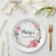 Rustic Pink Rose Floral 70th Birthday Paper Plate