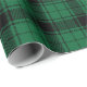 Farmhouse country rustic holiday pattern gift wrapping paper. Traditional, classic plaid tartan pattern consisting of black and green crisscrossed, horizontal and vertical bands.