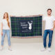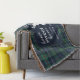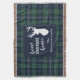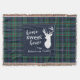 Cute home sweet home Christmas throw blanket you can easily customise by clicking the "Personalise" button, Featuring deer silhouette and clan Robertson tartan in green purple chequered pattern.