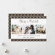 Custom rustic plaid photo merry and married Christmas cards featuring a snowy black and khaki buffalo plaid background with 3 photos in the middle and a beautiful hand-lettered script title above. Easily personalise this rustic plaid Christmas card with your images, text, and your family name.