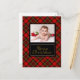 A cosy red plaid background sets the stage for a playful country Christmas greeting for family and friends. Change and personalise this card with a photograph of your family with a warm red, green, and black check patterned background and your greeting on the reverse side.
