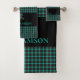 Rustic Plaid Monogram Deer | Black Teal Green Bath Towel Set