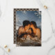 Easily personalise this romantic winter wedding photo save the date card featuring falling snow, sparling snowflakes and a khaki buffalo plaid pattern. THIS CARD WORKS BEST WITH DARK PHOTOS.