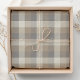 Neutral rustic plaid tissue paper in shades of tan, grey, and ivory.