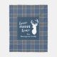 Cute home sweet home Christmas blanket you can easily customise by clicking the "Personalise" button, Featuring deer silhouette and clan Kerr tartan in grey blue chequered pattern. Perfect for your cosy nights in during the holidays. Makes a great housewarming gift