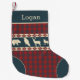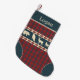 This festive holiday design features a rustic country red and teal tartan buffalo plaid pattern, southwestern ikat diamonds and woodland animals, including bear, elk, crow, and fox. At the top, heel, and toe of the stocking are white-edged teal areas. A customisable name appears at the top in white in popular typography. You can personalise this item for yourself or a loved one by changing the name.