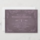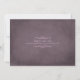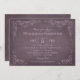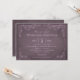 This formal wedding shower invitation card with a vintage wine label style design. Rustic hand-drawn sketches of grapevine leaves frame the important details. A simple flourished design with the event date appears on the reverse side. Dusty plum / aubergine / eggplant purple with lavender colour scheme.