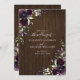Create the perfect fall wedding invitation with this trendy design featuring plum purple and eucalyptus floral botanical elements, corner elements, plum purple frame and faux barn wood background. Perfect for fall and winter weddings, but also lovely for rustic weddings at any time. Copyright Platypus Creek Designs, all rights reserved.