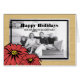 Simple and elegant Rustic Poinsettia Holiday Photo Greeting Card featuring a vibrant pair of red hand drawn poinsettia flowers and a faux woodgrain look background. This charming and unique photo card is easy to customise with a family photo and custom Christmas greeting. Click "customise it" to find additional personalisation options.