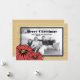Simple and elegant Rustic Poinsettia Holiday Photo Flat Card featuring a vibrant pair of red hand drawn poinsettia flowers and a faux woodgrain look background. This unique photo card is easy to customise with a family photo and custom Christmas greeting. Click "customise it" to find additional personalisation options.