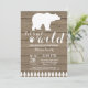 Rustic Polar Bear Baby Shower Invitation. Winter Baby Shower invitation. Boy or Girl Baby Shower Invitation. Let's get wild. Winter Holiday Baby Shower Invite. Rustic Wood Background. Country Vintage Retro Barn. For further customisation, please click the "Customise it" button and use our design tool to modify this template.