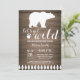 Rustic Polar Bear Baby Shower Invitation. Winter Baby Shower invitation. Boy or Girl Baby Shower Invitation. Let's get wild. Winter Holiday Baby Shower Invite. Rustic Wood Background. Country Vintage Retro Barn. For further customisation, please click the "Customise it" button and use our design tool to modify this template.