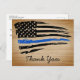 Rustic Police Thin Blue Line Flag Thank You Postcard