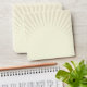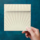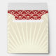 This envelope, with a large tan and cream star burst on the outside, has a customisable return address printed on the back flap. The inside lining is a red and ivory scalloped pattern.