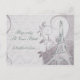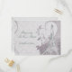 Swirls billow and curl about a dark teal green sienna hand-drawn Eiffel Tower against lavish, floral purple damask pattern. A French love poem is faintly inscribed in the silver background, providing the perfect accompaniment to the rsvp wording in script and engraving style fonts.