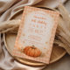 A warm and inviting design inspired by autumn gatherings, featuring a hand-painted pumpkin surrounded by soft florals and delicate foliage in earthy, muted tones. The elegant wreath and textured background create a cosy, vintage-inspired atmosphere—perfect for celebrating milestone moments in a refined yet heartfelt way. Ideal for fall celebrations, this design blends rustic charm with timeless floral beauty.