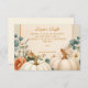 A charming autumn-inspired baby shower design featuring soft watercolor pumpkins, peach roses, eucalyptus greenery, and delicate fall florals. The rustic yet elegant style captures the warmth of the season, making it an inviting choice for celebrating the mum-to-be.