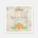 This cute first birthday party napkin features a graphic of a bright orange pumpkin accented with pink flowers on a rustic background. Personalise this adorable party napkin with the child's name.