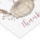 Rustic earthy country style Thanksgiving table runner, featuring a pumpkin with a hint of glitter, encircled by an earthy fall foliage wreath. Pretty watercolor with a script "thankful".
