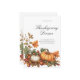 This design tells the story of autumn’s natural abundance, celebrating the harvest season with rustic charm and timeless beauty. At its heart are pumpkins,one classic orange and one ivory,resting among pinecones, acorns, berries, and colourful fallen leaves, each symbolising the fruits of the earth and the cycle of renewal. The warm tones of gold, red, and green evoke the crisp air and cosy gatherings of fall, making it a perfect emblem of Thanksgiving and seasonal festivity. What makes it special is its understated elegance: it captures the quiet richness of nature’s gifts, reminding us that gratitude often begins with appreciating life’s simple, enduring blessings.