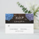 Cute rustic blue and purple floral wedding RSVP cards featuring rustic wood with blue and purple hydrangea flowers. Perfect card design to complement your purple and blue rustic wedding party. Matching items available.