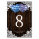 Rustic Purple and Blue Wood Lace Floral Table Number