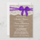 Rustic Purple Bow, Burlap & Lace Bridal Shower Invitation