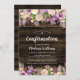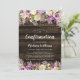 This rustic floral confirmation invitation features lilac purple watercolor flowers, string lights and a dark barn wood background. Easily personalise this invite using the online template fields.