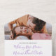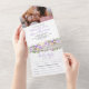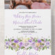 Elegant all in one wedding trifold invitation featuring a chic white background that can be changed to any colour, a photo of the happy couple, elegant purple & lavender watercolor florals, wedding invite, and an rsvp menu option postcard for your guests to tear off and send back.