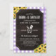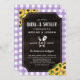 Rustic Purple Gingham Sunflowers Baby-Q Shower Invitation