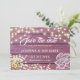 Announce your special day in style with our "Rustic Purple Wood String Lights & Lace Save the Date". This charming postcard features a delightful combination of baby's breath and twinkling string lights, exuding rustic elegance and romance. Customise it with your names and wedding date to create a personalised keepsake for your guests. Don't miss out on this opportunity to share your joy with family and friends in a beautifully rustic and heartfelt way. Shop now and set the stage for your unforgettable wedding journey!