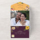 Celebrate your love with a burst of vibrant colours and modern boho charm using our bold orange and purple wedding all-in-one invitation. This stunning design features cheerful watercolor flowers and radiant sunflowers, creating a warm and joyful ambiance. The elegant yet rustic layout perfectly captures the essence of your love story.