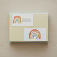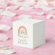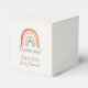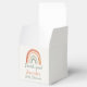 Charming baby shower favour box featuring a hand painted style, neutral-tone rainbow illustration and a heartfelt “Thank you!” message. Below the rainbow, the event is personalised with “Baby Shower” in playful, modern typography. The clean white background and subtle earthy colours offer a gender-neutral look, making the box suitable for a variety of baby shower themes and celebrations. Sturdy and easy to assemble, the box is designed to hold small treats, gifts, or tokens of gratitude, providing a memorable finishing touch for your event.