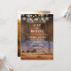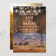 This rustic western barn wood wedding invitation featuring a western ranch mountains scene and string lights on a barn wood background can be personalized with your information in stylish typography and special photo on the reverse. Designed by Thisisnotme©