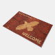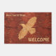 A digital recreation of a simple Raven (Corvus corax) image formed by carefully scraping off the reddish outer surface on the reverse side of birchbark to reveal the lighter, yellowish layer beneath. This is a traditional craft among Native Americans/First Nations across the northern United States and Canada. Customisable text reading, " WELCOME" also appears and there is an additional place for you to add your own text.