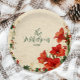 A bold and festive Christmas design with vibrant red amaryllis flowers, holly leaves, and winter greenery. The rich botanical frame creates a warm rustic holiday feel, perfect for sending joyful seasonal greetings.