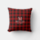Rustic Red and Black Buffalo Check Monogram Name Cushion