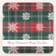 Rustic Red and Green Snowflakes pattern Holidays Square Paper Coaster