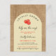 This rustic baby shower invitation with a country theme ´Locally Grown´ (Farmer's Market) features an elegant cream arch on the natural linen / cotton fabric background. The custom text is written in a mix of modern simple typography and handwritten script. It is decorated by a lovely hand-painted watercolor illustration of red apples. The reverse features custom text in red framed by a red plaid pattern. This baby shower invitation is perfect for a gender neutral party, for a baby girl or boy! Ideal for a picnic in the park!