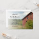 Personalise the charming Rustic Red Barn Family Reunion Invitation to invite relatives to your casual yet classy gathering. This quaint custom country theme family reunion invite features a farm style photograph of a red rustic wooden barn with tall green trees in the background. Perfect inspo or idea for an informal ranch or barn party event. Available as a printed invitation for mailing or as a digital download for easy sharing digitally online.