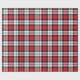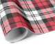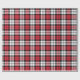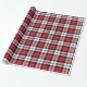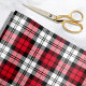 This classic holiday wrapping paper design features a rustic red and white with black watch Scottish tartan plaid patterned background.
