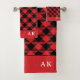 Rustic Red Black Buffalo Check Monogram Bath Towel Set