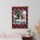 Celebrate with your family by enjoying and remembering the most beautiful memories with this decorative family photo hanging tapestry with wooden frame. Design features 4 of your favourite photos. Customisable family name and year on a rustic and very traditional red black buffalo check also known as lumberjack plaid pattern.