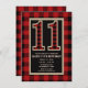 Rustic Red Black Buffalo Plaid 11th 11 Birthday Invitation