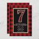 Rustic Red Black Buffalo Plaid 7th Birthday Party Invitation